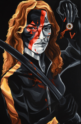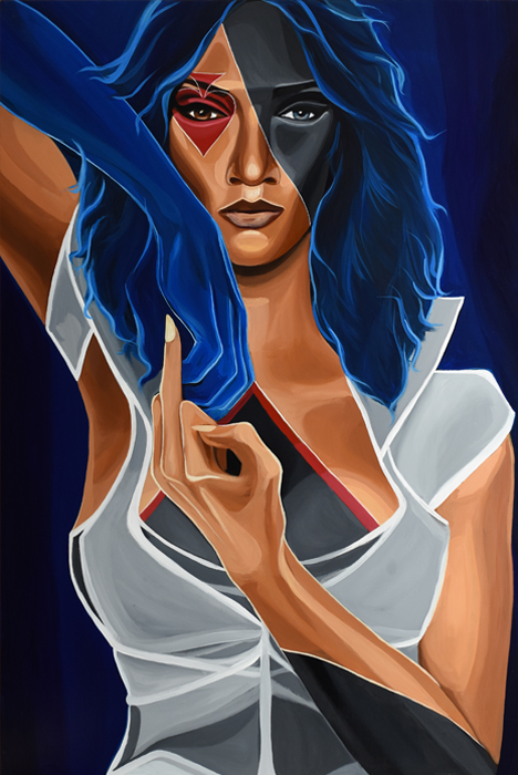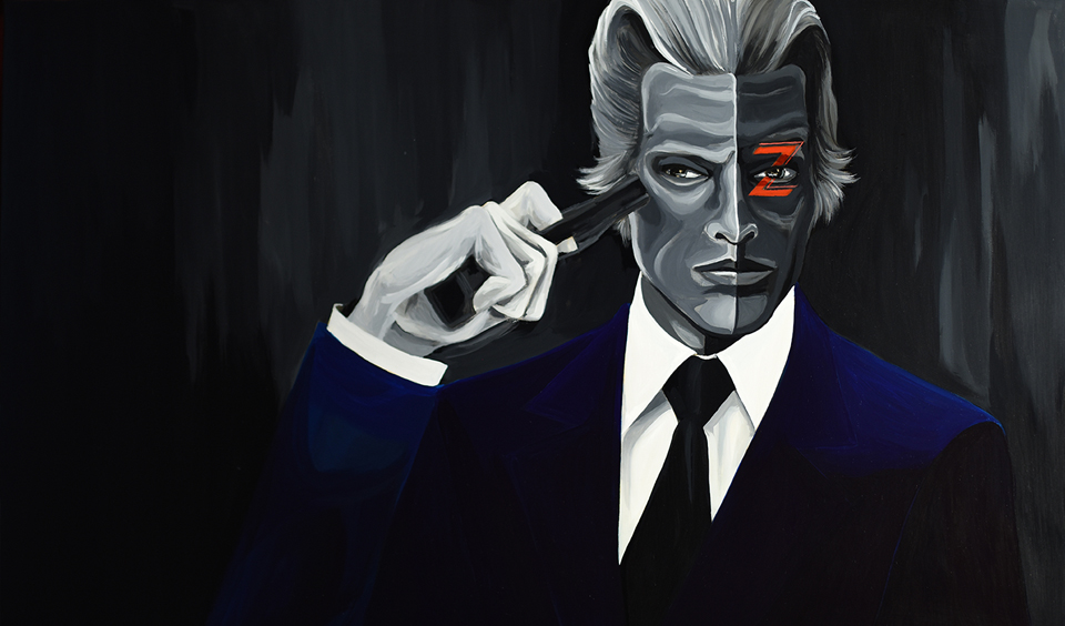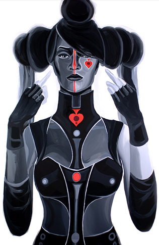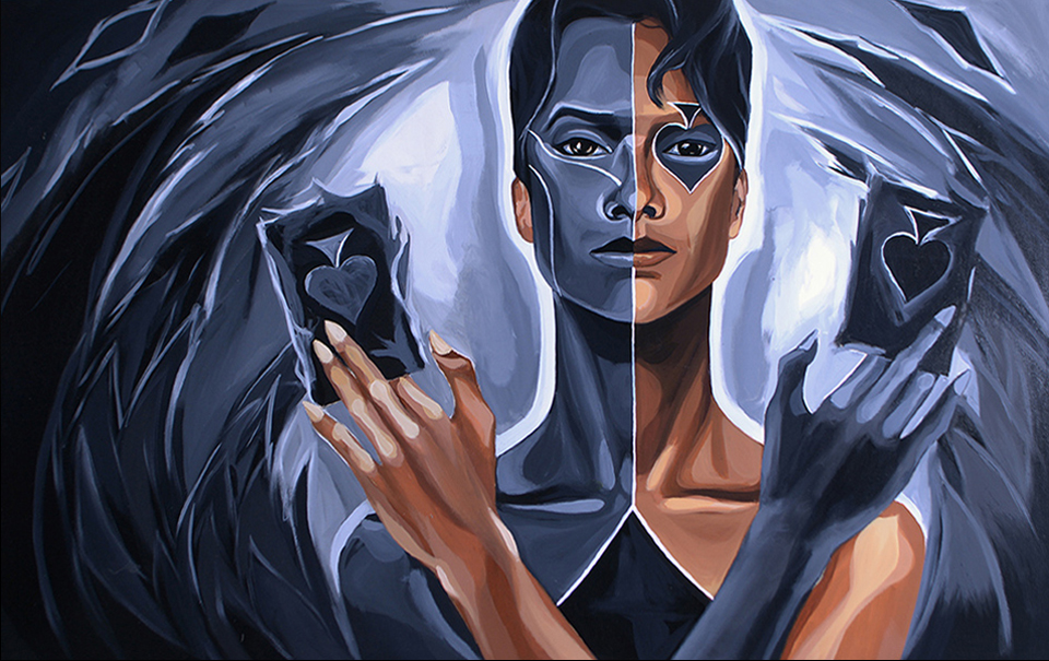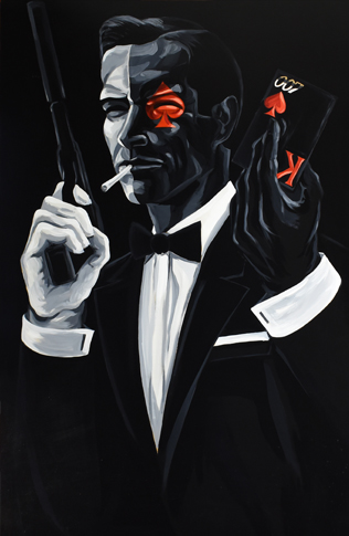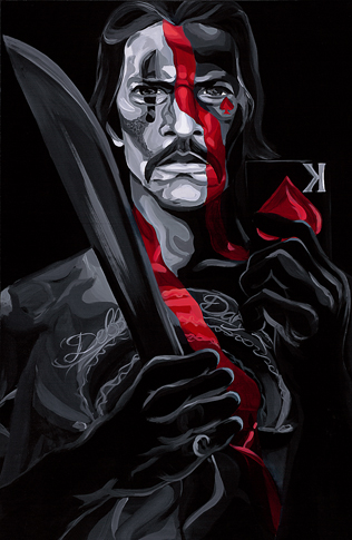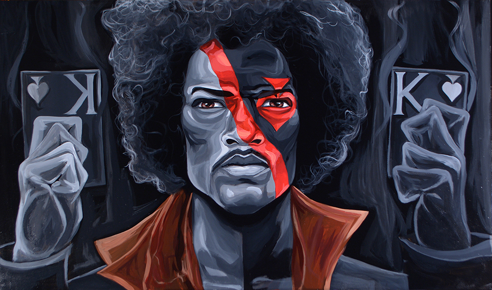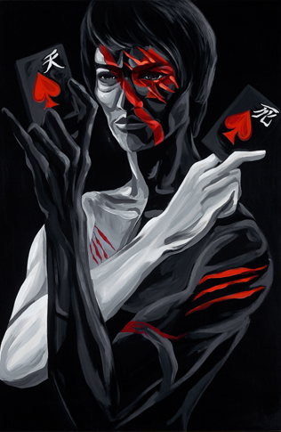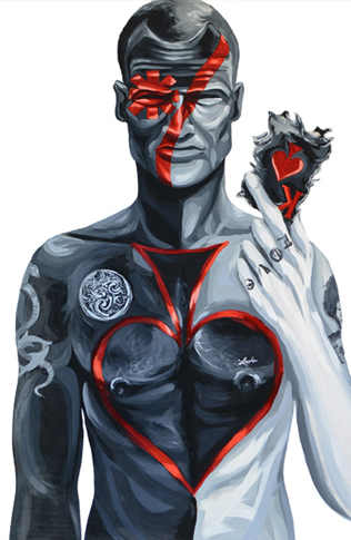 A poker themed series where iconic figures from music and film have playing card symbols etched on their face and body.